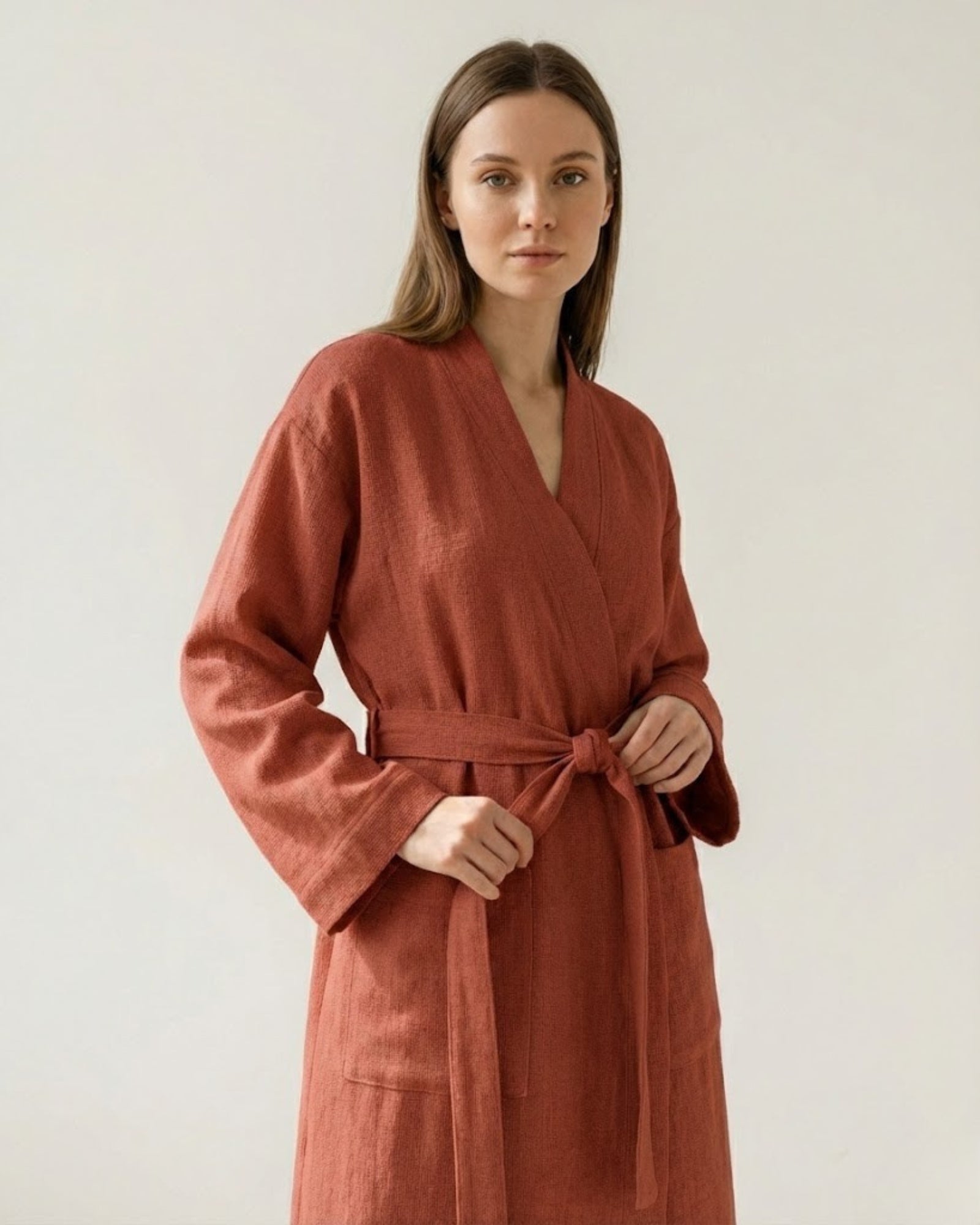 This robe is the ultimate hybrid of breezy linen and soft cotton, designed for those who take their "off-duty" hours seriously.